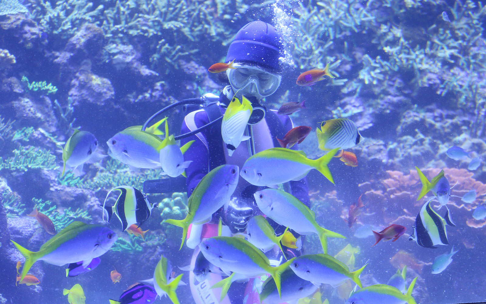 | 09:30 | 大環遊水槽的魚類解說 ※潛水員的餵食解說只在週末及節假日進行 | 2F – 美人魚廳 |