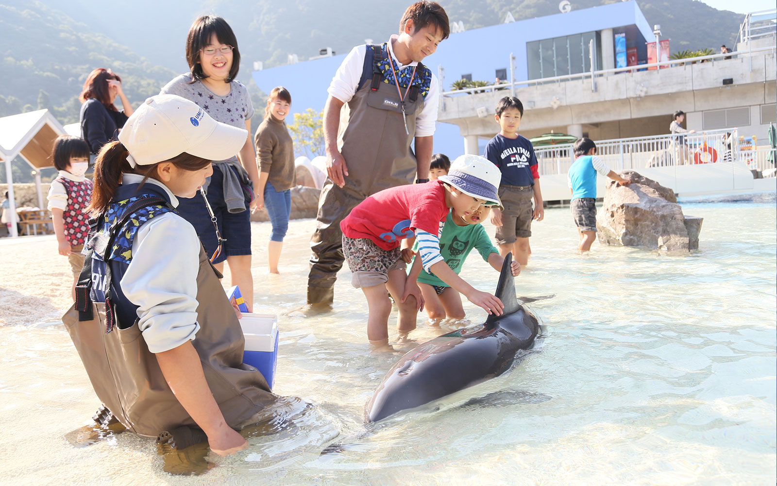 這裡水族館充滿了獨特性,擁有與海洋融為一體的設施、絕佳的地理位置以及獨特的動物表演,而「阿蘇海灘」是俯瞰別府灣的大型開放空間,可以觀察到在水裡自由游泳的海豚